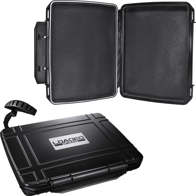 The HD-10 Loaded Gear Tablet Case by Barska is a waterproof transport case that features a shock-absorbing interior,removable carrying strap, and a latching closure. The compact size of the HD-10 case is designed to fit most tablets, e-readers, and other handheld electronic devices while retaining its portability. The HD-10 can easily be transported in a day bag or backpack without taking up much room, while corrosion-resistant polymer hard case protects the device from external damage during transport. A water tight o-ring seal and tough exterior latch provides full waterproof protection to the contents inside. The interior of the HD-10 Hard Case is lined with a shock-absorbing foam that provides interior cushion support and ensures a secure fit. Tablet not included.