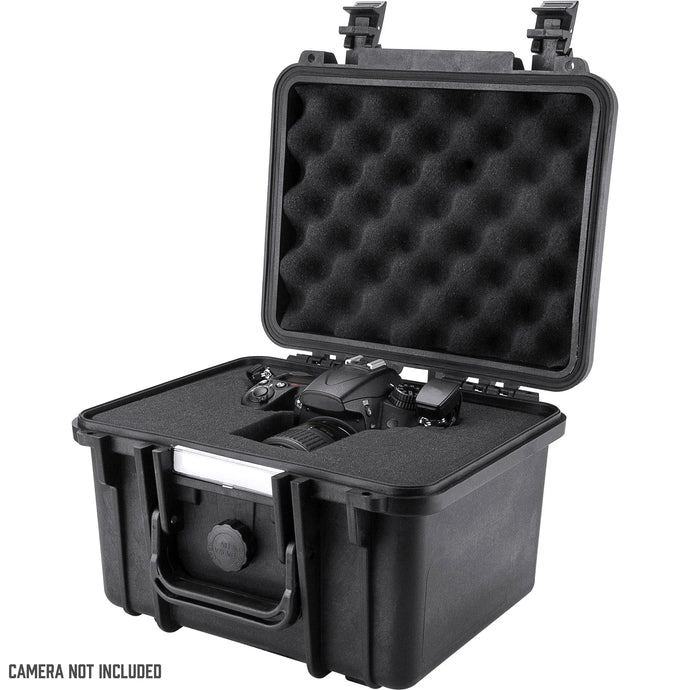 The Loaded Gear HD-150 Watertight Hard Case is an all-new protective storage solution that provides superior protection for fragile objects. Two layers of perforated cubed foam can be customized to provide shockproof protection for the valuables within. This high level of protection makes the HD-150 ideal for storing or transporting items such as DSLR cameras, GoPro cameras, compact video cameras, sport optics, smart phones, jewelry, and other valuables. The Loaded Gear HD-150 is a protective dry case that features an o-ring lining that forms an airtight and watertight moisture-proof seal when closed. An external purge valve helps maintain an equalized pressure on the inside of the case, which is useful for traveling on a plane or to areas of extreme elevation differences. Strong hinges and two padlock mounting points ensure that the valuables inside remain safe and secure during transport or while being stored.