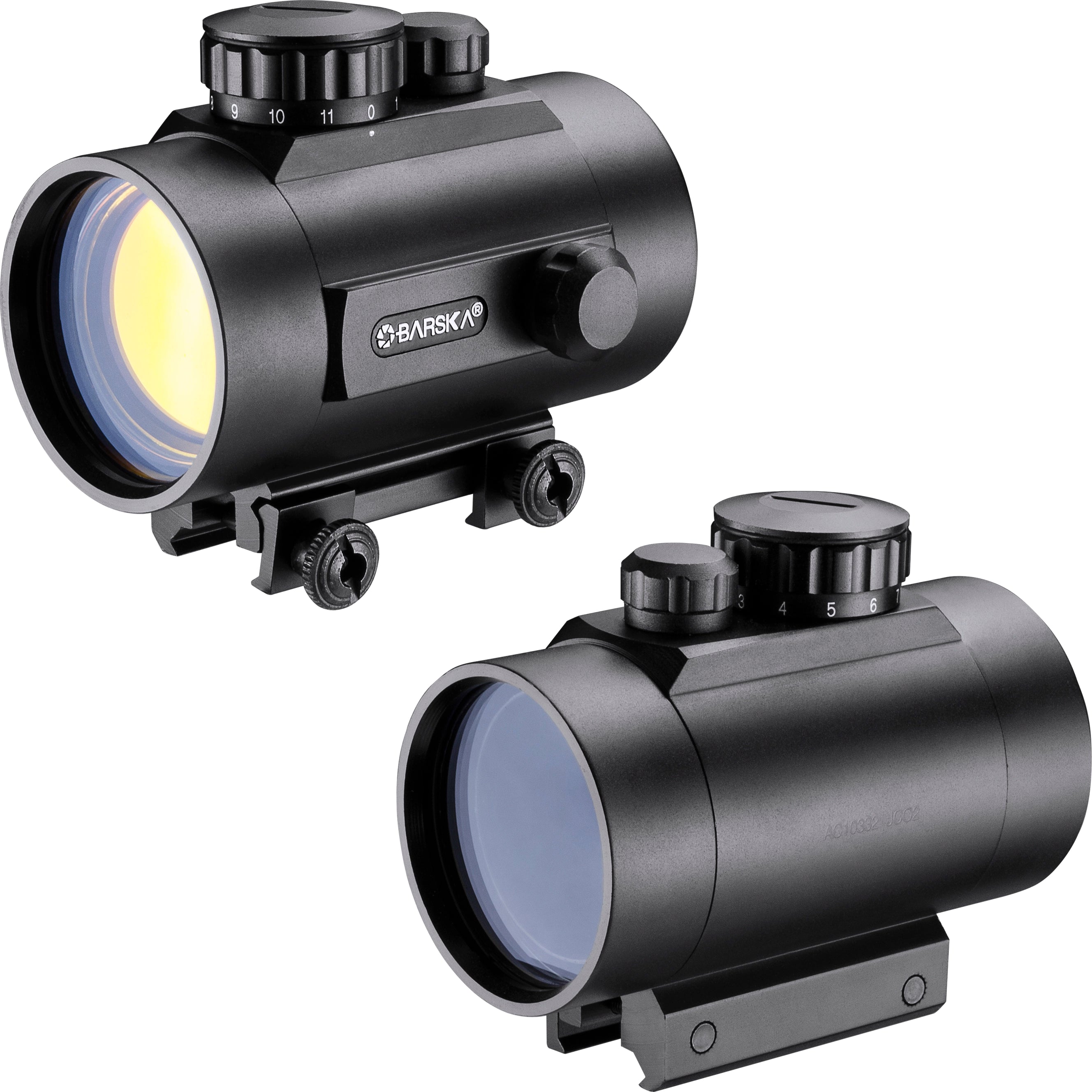 The 50mm 5 MOA Red Dot Sight from Barska provides fast target acquisition, pinpoint accuracy and a wide field of view. It is the perfect illuminated mil-dot sight for handguns, rimfire rifles, shotguns, pistols, black powders and crossbows. The Red Dot Sight has a finger adjustable rheostat allowing variable reticle brightness control. Anti-reflective coating, unlimited eye relief and ruby coated optics create a sight with optimum performance at an affordable price. It includes an integrated mount. Backed by Barska's 1 Year Limited Warranty.