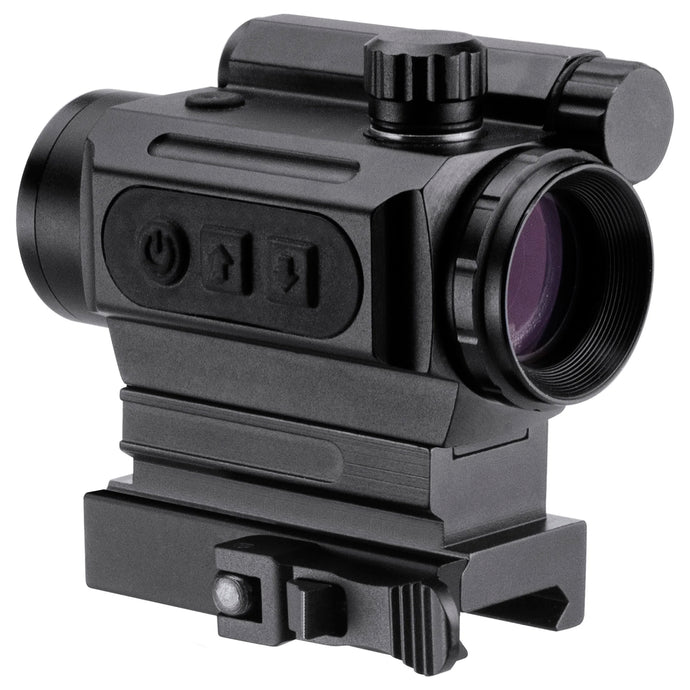 The 1x20mm AR-X HQ IR Red Dot Sight by Barska is a versatile sight designed for split-second targeting and well equipped for any situation. An innovative auto-brightness setting allows the 1x20 HQ sight to automatically adjust the red dot brightness to better match the current lighting environment. Also included is a precision quick-release mount that will maintain a zero setting shot after shot.